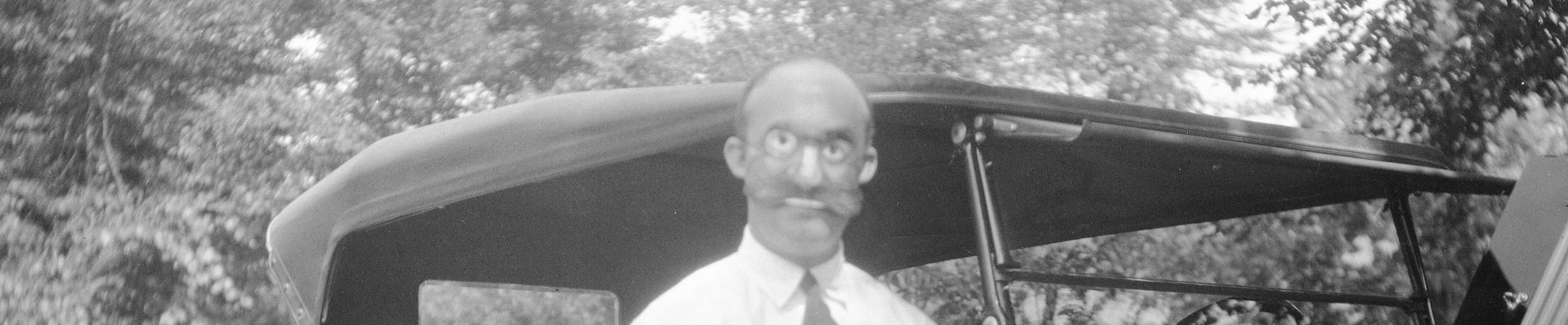 Image: Mr. Clash wearing a mask at Bushkill, 1915-1925, 2017239_07_228, Series V., ‘Personal and biographical,’ Box 7, Folder 228, Frank E. Schoonover negatives (Accession 2017.239), Audiovisual Collections & Digital Initiatives Department, Hagley Museum & Library, Wilmington, DE 19807.