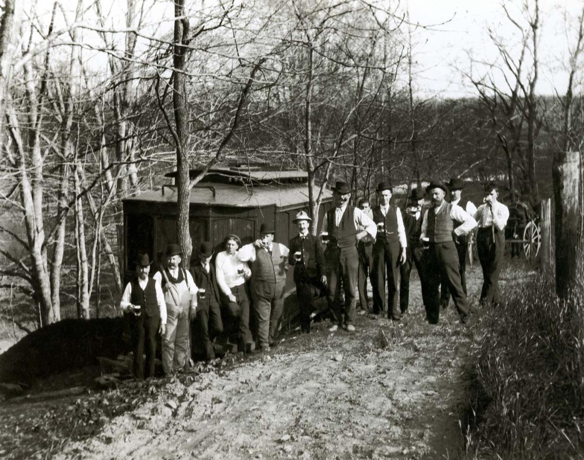 Powdermen drinking beer near Brandywine Creek