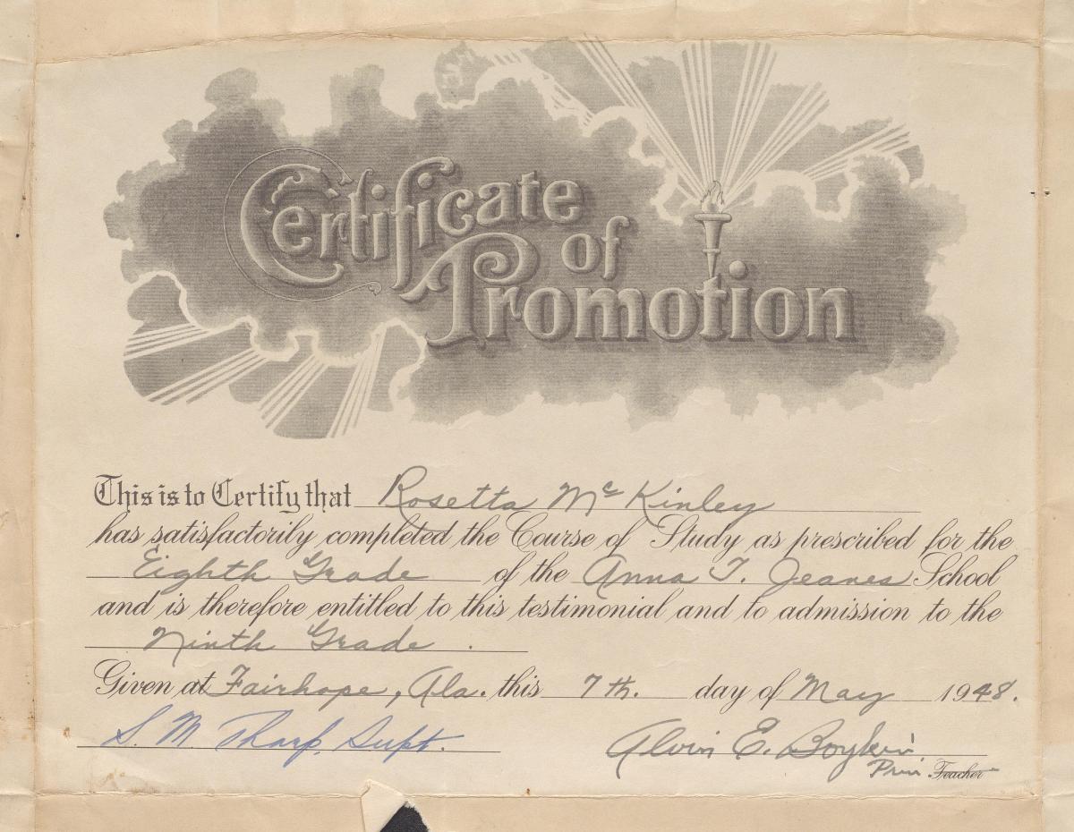 Rosetta "Rose" McKinley Henderson was born to William and Arvie McKinley in Fairhope, Alabama on December 8, 1932. One of sixteen children, she attended the Anna T. Jeanes school (pictured) and the Baldwin County Training School.