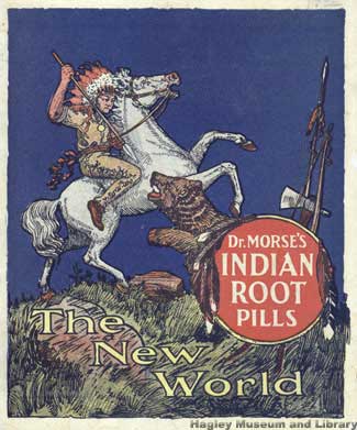 One of the most popular patent medicines, Dr. Morse’s Indian Root Pills was almost identical to the hundreds of other cure-alls, or at least claimed to cure the most common ailments of the day. It was advertised as a specific cure for most blood, stomach and liver diseases. The manufacturers claimed that the pills would "absolutely remove all dyspepsia, giddiness, headache, and are most useful in female disorders."
